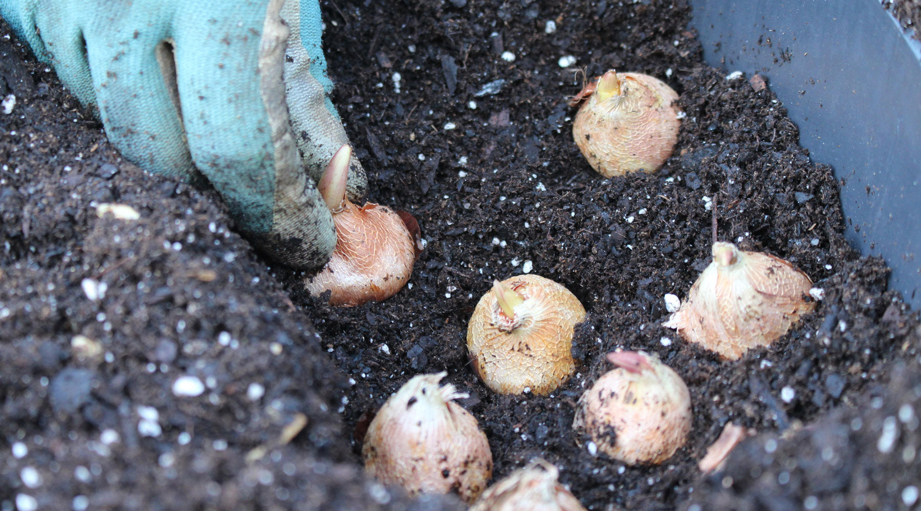 Dwarf varieties not only can be used in the flower garden but they can be grown in containers as well. Choose a large container that's at least 12 inches deep with good drainage holes. Fill it with potting soil. Plant your corms flat side down, pointy side up, 6 inches apart and 6 to 8 inches deep. Planting deeper will help to keep the flower stalks upright.