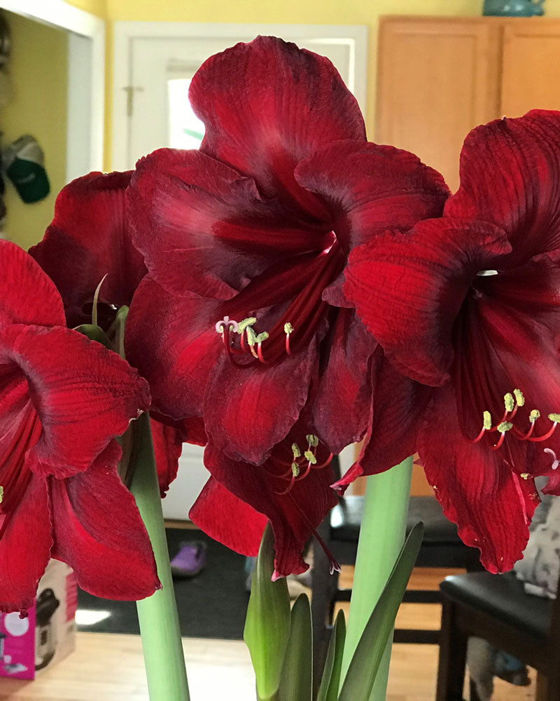 Once your Amaryllis is in full bloom, keep it looking its best by keeping it at cool room temperature and out of direct sunlight. If it's on display in a warm room, just put it in a cool place (55° to 60°F) at night. Remove spent blooms after they fade. Watch for additional flower shoots, which sometimes appear as the first flowers fade.