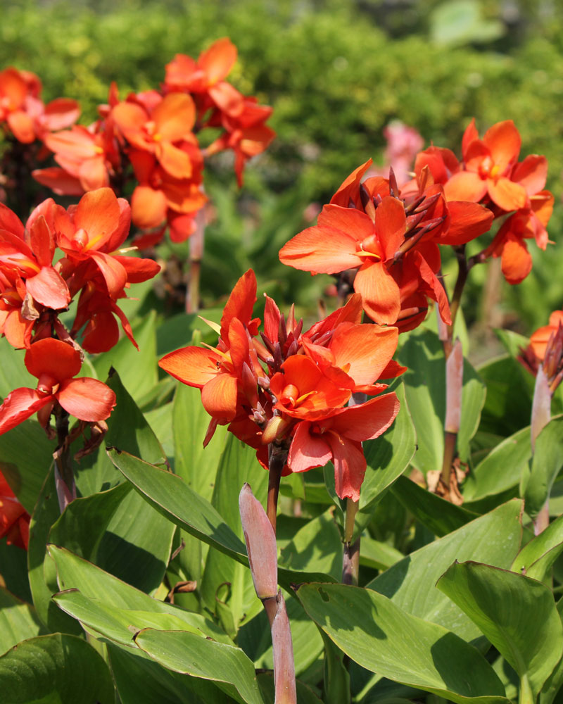Light: Cannas need full sun to reach their flowering potential. Shade encourages leggy growth that can cause foliage to flop over. Plants in shade won’t produce as many flowers, either. Several varieties are grown for their colorful leaves, which are not as bright in the shade.