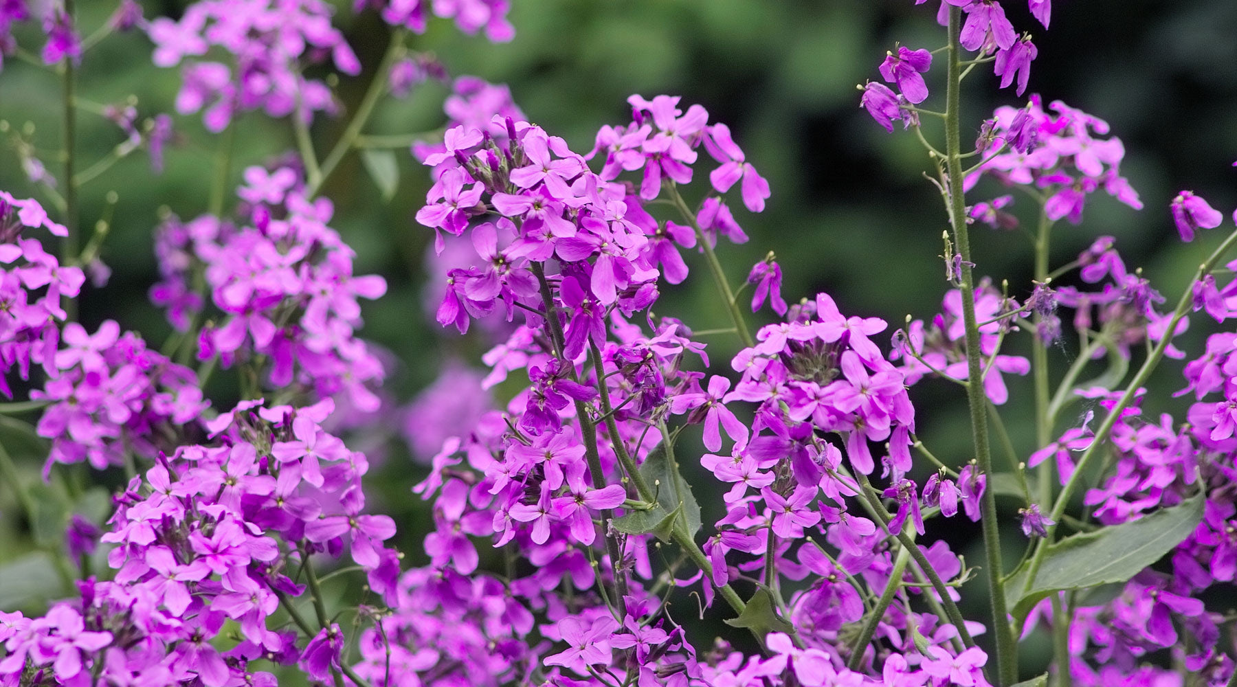 The lower photo is a spring bloom of lavender Dame's Rocket.