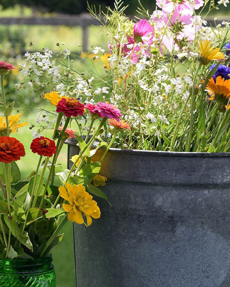 Once your Zinnias, Cosmos, Sunflowers, and more are in bloom comes the fun part -- harvesting to create your work of art! There are a few simple steps to ensure your cut flower lasts longer, and best practices to encourage the plant you're cutting from to keeps on producing flowers in your garden.