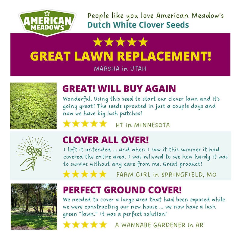 Dutch White Clover is an extremely versatile perennial clover. It can be used in lawns, pasture mixtures, as a cover crop, groundcover and for erosion control. It is known as one of the most popular clovers used in lawn mixtures.