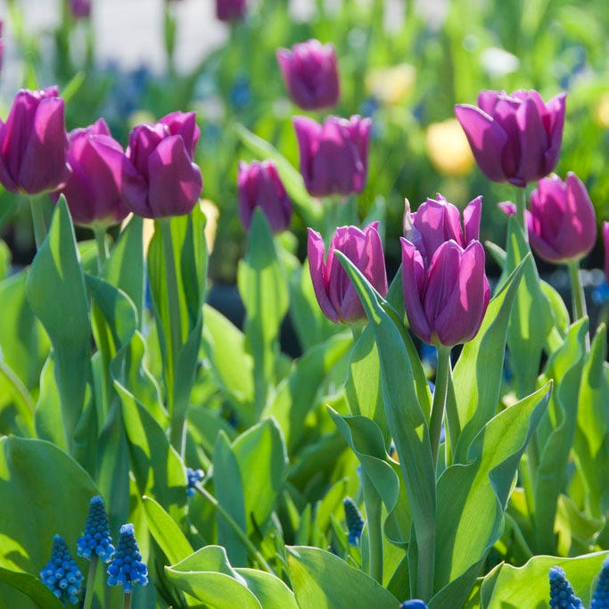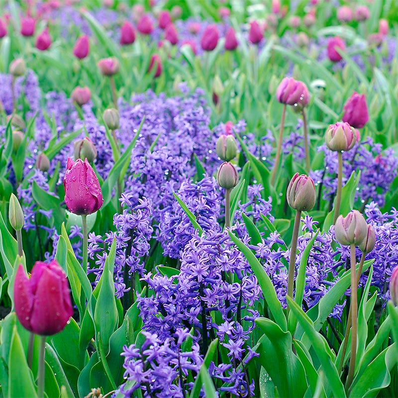 Our Ultraviolet Bulb Collection combines two spring essentials for one dazzling display. The color palette is one of pure harmony, creating a continuum of purple hues. 'Purple Prince' Tulip opens first, with gently scalloped petals topping strong stems that stand up to wind and rain. 'Blue Jacket' Hyacinth follows soon after, drawing pollinators to the garden. Easy to grow in beds and borders and well-suited to life in a container, this pair provides a simple solution to creating unity between the garden and patio. Plant the bulbs en masse to create a dramatic display. Select a planting location with full to partial sun and well-draining soil. This pair is hardy in zones 3 through 8. Allow the foliage to mature and die down naturally after blooming to nourishes bulbs for next season's blooms.