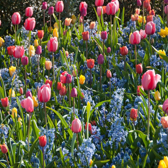 'Blue Festival' Hyacinth delights the senses with a flush of fragrant periwinkle-blue blooms. 'Blue Festival' produces multiple flower stems per bulb in mid-spring, with loosely packed florets adored by bees. This award-winner naturalizes readily, multiplying and spreading over time. It even tolerates planting under black walnut trees and adapts beautifully to rain gardens. (Hyacinthus orientalis)
