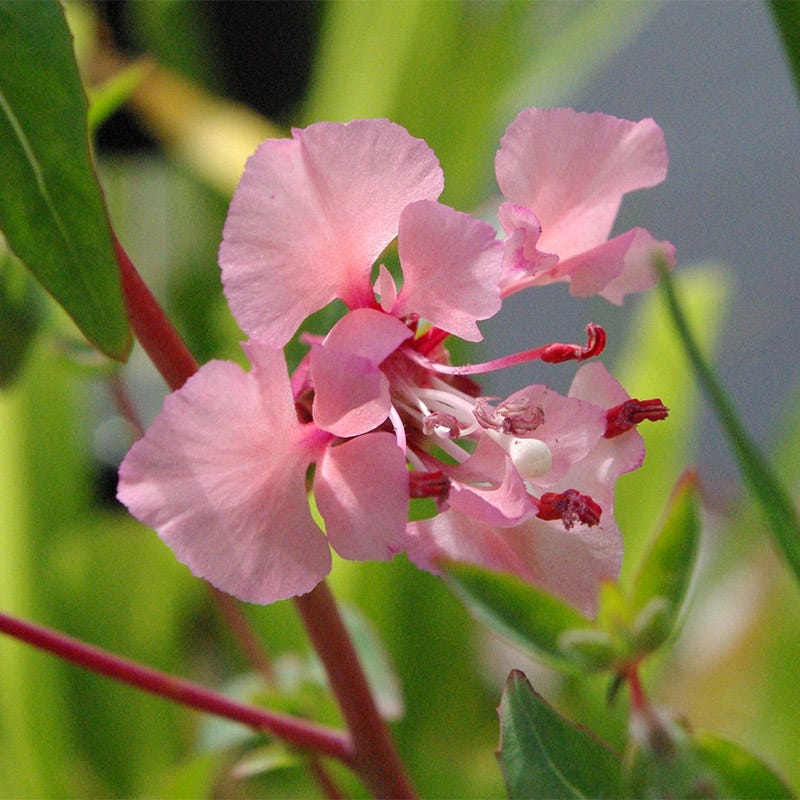 Imagine pink powder puffs up and down bright red stems 2 ft. tall. That's beautiful "Farewell to Spring." Annual.