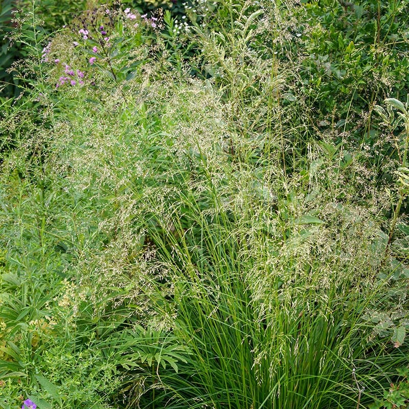 Tufted Hair Grass is an excellent choice for adding height and structure to the garden. Happy in part sun/part shade locations in average soil and moderate moisture, Tufted Hair Grass will add a unique and lively element to the garden. A North American native, birds love the seeds. Planted in mass or with other grasses it can create a lovely meadowscape. Plant with ferns and hostas for a unique look. Easy care, just cut old growth to the ground in early spring before new growth emerges. It is a larval food plant for several butterflies in North America including the Umber Skipper.