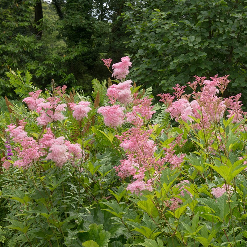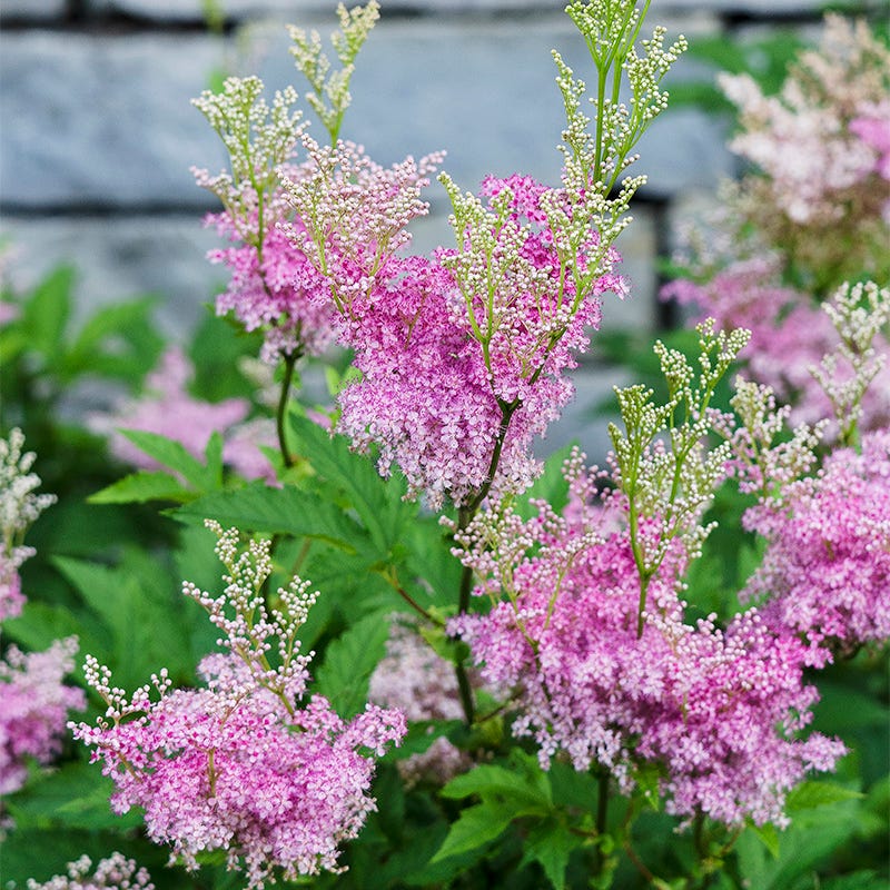 Queen of the Prairie has tall, majestic flower clusters that command center stage from early to mid-summer. The airy flowers and lush foliage add a touch of texture to the garden and attract pollinators aplenty. Add a few stems for drama to cut flower arrangements. Plant this native deer-resistant perennial in a spot where it can vigorously grow and spread. (Filipendula rubra)