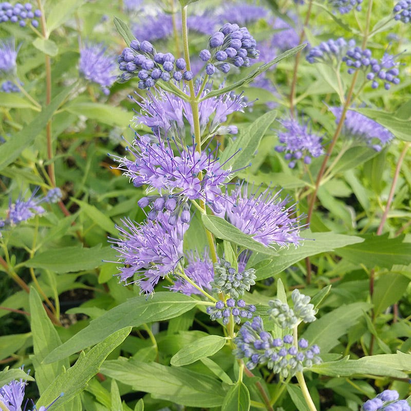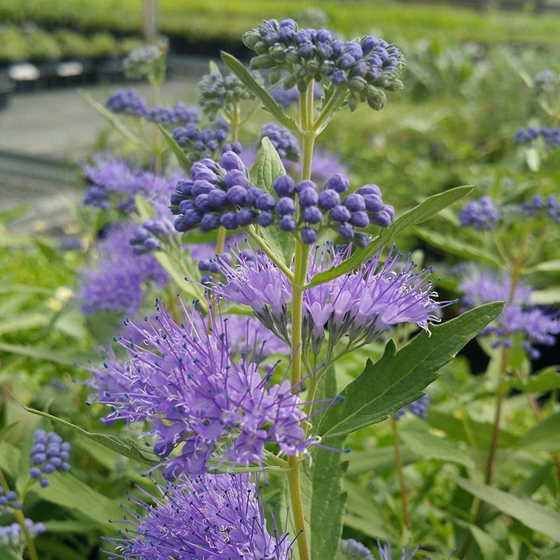 'Dark Knight' Bluebeard has the deepest blue color of all the Bluebeard varieties. Its' tidy, upright growth habit and profusion of flowering spikes make it an essential part of the summer landscape. A reliable performer, 'Dark Knight' flowers heavily every year. Of modest size, it can be used in front of low walls, as a hedge or in groups around the base of larger shrubs, small trees and upright evergreens. Avoid heavy wet clay soils.