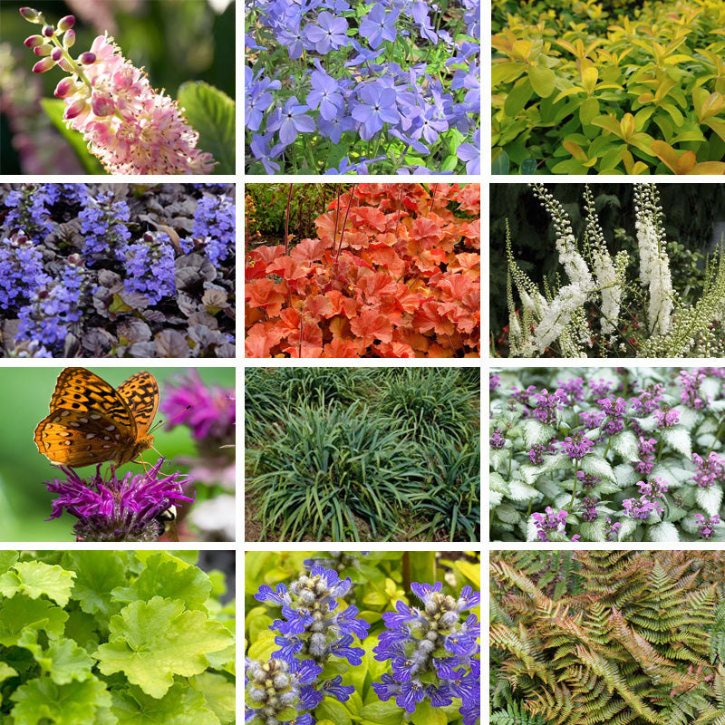 • Bring vibrant color to the shady spots in your yard with our Sparkling Shade Pre-Planned Garden of 16