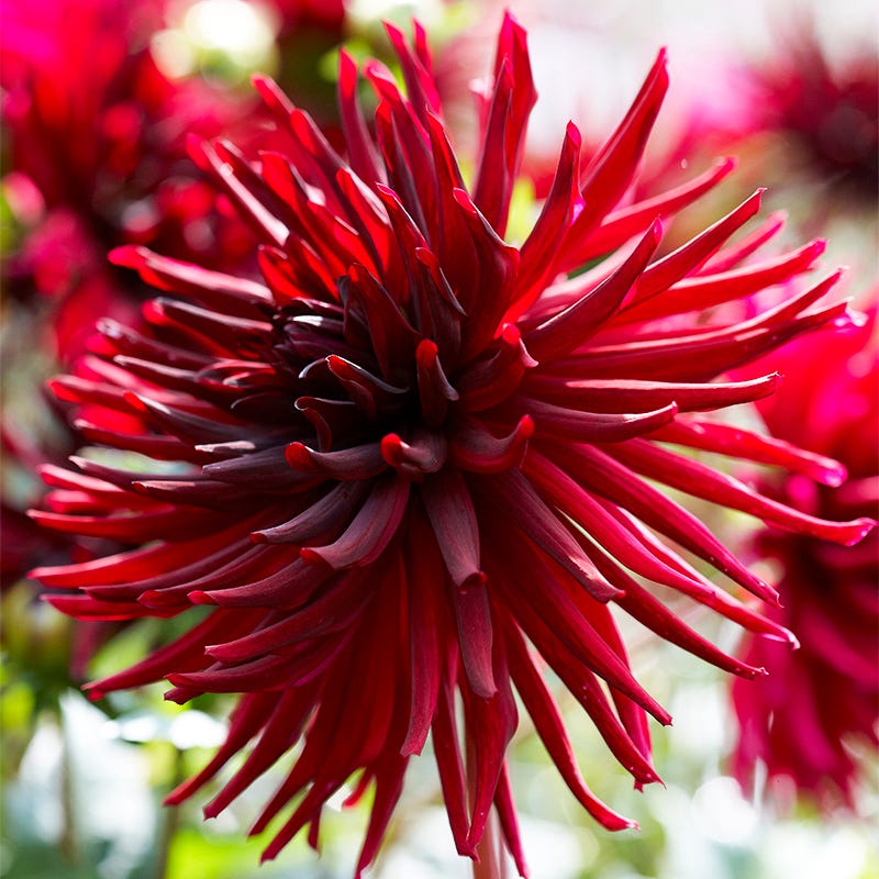 Dahlias are perennial in zones 8-10, but in cooler zones, tubers can be dug after frost comes, stored over winter, then re-planted the following spring. Grow Dahlias in a sunny spot, in average soil that drains well. Keep moisture consistent once it begins to grow and enjoy a non-stop color parade. Deadhead spent blooms to encourage more flowers and pinch off small side buds to encourage larger flowers if desired.