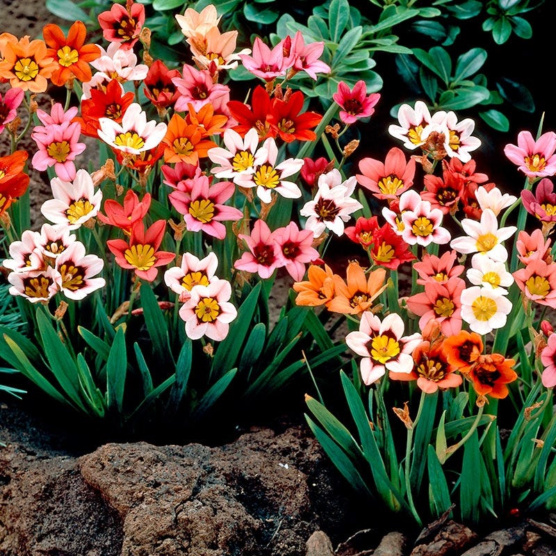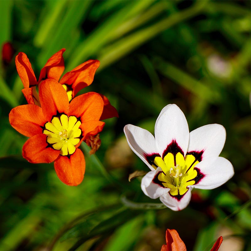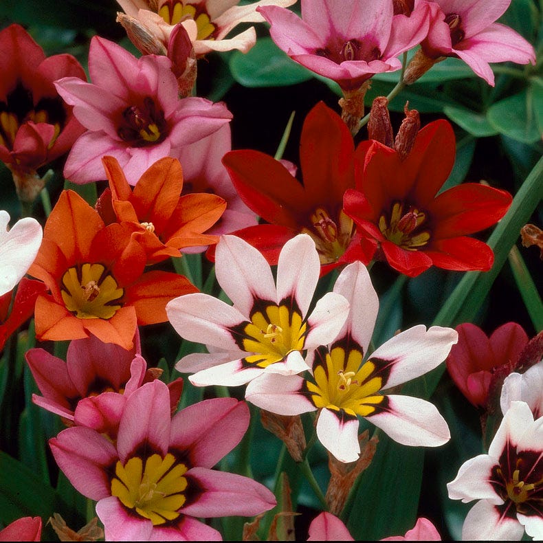 Sparaxis, also called Harlequin Flower, boasts jewel toned flowers with bright yellow throats, edged in black. The bloom is reminiscent of the Harlequin's collar, hence the common name!