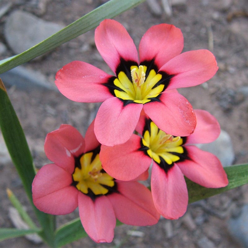Happy in full sun, plant it along borders, in a rock garden, or anyplace its bright, unusual flowers can be appreciated. Drought tolerant, water freely during flower growth, but it’s not fussy and will do well with minimal care. Sparaxis are cold hardy to zone 9, and will do well with a deep mulch down to zone 7. In colder zones, grow Sparaxis as an annual, or lift the corms before frost and store in a cool, dry place to be replanted in Spring.